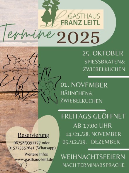 25. Oktober SPIESSBRATEN&ZWIEBELKUCHEN